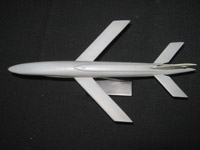 Again found on Ebay, in 2010, is this desk model of the Firebee I, painted orange with black tips. It measures 2.75" / 70 mm length and 1.75" / 44 mm span. The length suggests a scale of around 1:100, but the wing span does not agree.