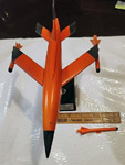 In 2025, the model shown below was offered on Ebay. The color appears to be more of a red than an orange as in the previous photos. It has 'DRONE' markings in several places and a white fin tip. The foot has additional 'U.S. AIR FORCE Q-2' text.