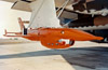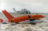 The archives of the Air Force Test Center (AFTC) History Office at Edwards AFB contain three photos of AQM-34L TV-50 (Test Vehicle 50), that Craig Kaston duplicated with permission. Its orange-red color scheme leaves no doubt that this indeed is a test vehicle. Only the last part of the parachute tailcone is left black. The shark mouth shows a red tongue (barely visible on the red-orange) and drops of saliva swept away by the wind. In the first two photos, the Microwave Command Guidance System blade antenna usually fitted on top of the vertical fin is missing, and it appears that no camera windows were installed.