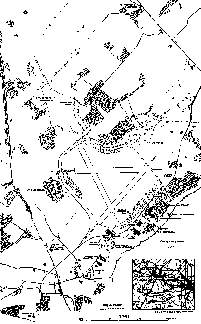 Shown below is a wartime RAF/USAF map of Bad Zwischenahn, home to EK16 until August 1944. The date of the map is unknown. Source: 'Fliegerhorste und Einsatzhäfen der Luftwaffe' by Karl Ries and Wolfgang Dierlich, Motorbuch Verlag