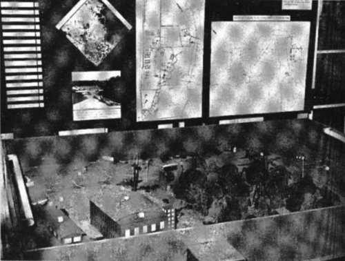 After the war all hangars and runways were blown up, and the RAF set up a hospital at the lakeside. The hospital was taken over by the German Defense (Bundeswehr) in 1959. The hospital has a model of the former airfield inside the lobby. It was built by J. Reinike, who also wrote 'Chronik des Flugplatzes Zwischenahn'. The model represents a small part of the airfield, and includes photos and drawings, visible in the background. The photo below was made in 1968, and the scan is courtesy of Lorne Hughes (Canada).