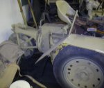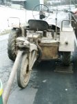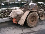 Martin Kämpf from Germany also owns an original Scheuch-Schlepper. He obtained it in autumn 2004 from the original owner, who found two of them shortly after the war in the Kölln-Siegen-Koblenz area. The second Schlepper was stripped of most of its parts, and the rest was scrapped. The surviving example is in a good condition considering its age, and complete except for the exhaust. The engine is a 1954 Volkswagen engine. Restoration has started in January 2005, with the removal of the engine and gearbox. Martin reports that the 'Typenschild' has the following data: Gerät Nr.: 121-206A / Werk-Nr.: 385 / Hersteller: ohv. The manufacturer code 'ohv' confirms that Scheuch-Schleppers were built by Bruno Müller in Triptis/Thüringen. The engine number is -1-0832877 from 1954, the gearbox is number T*2-029475* from 1943. The gearbox is a standard Volkswagen Käfer unit, and it is probably the Schlepper's original gearbox. The Schlepper doesn't have the second steering wheel, since it was probably used for V1 operations.