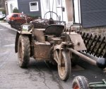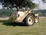 The Scheuch-Schlepper was designed as a simple and affordable agricultural machine. It was either used as a single-axis tractor with bolted-on equipment, or as a three-wheeled tractor. The Scheuch company of Erfurt developed it in close co-operation with the auto maker Auto-Union, department 'DKW-Einbau-Motoren' (it is also reported that Scheuch was a subsidiary company of Auto-Union). Several DKW engines could be fitted: a 6 hp 300cc engine, a 8.5 hp 450cc engine, or a double set of the former engine. Two gearbox options were available: a main gearbox, and an optional second gearbox that provided two forward gears and one rear gear. The wheel track could be varied to make it fit in different furrows. The rear wheel could pivot around its attachment point for extra manoeuvrability. The rear wheel could be detached by releasing four bolts, after which agricultural equipment could be fitted. (Source: 'Schlepper und Anbaugeräte - Handbuch des deutschen Schlepperbaus (2. Auflage)', 1942, by H. Flücht and H. Blum)