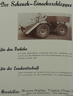 The book 'Ackerschlepper - Historische Dokumente aus der Geschichte des deutschen Traktorenbau Band 2' by Wolfgang Gebhardt contains an old advertisement for the 'Scheuch Einachsschlepper'. The photo in the advertisement shows a vehicle that featured the front end of the military Scheuch-Schlepper combined with a open box trailer.
