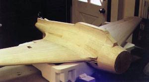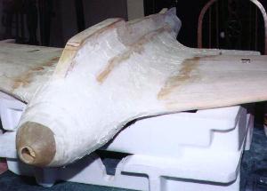 | The next step is covering the balsa skin with a thin coat of 'micro', a mixture of epoxy resin and glass microballoons. This works like putty, is light-weight and sands easily. | ||