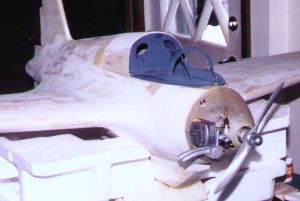 | Here the sanding has been completed, and the engine and engine cowl have been installed for test fitting. | ||
