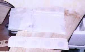 | The elevons are then covered heat shrinkable polyester fabric. The lower elevon has been completed and the upper one only has the fabric trimmed to the rough size. | ||