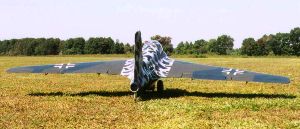 | Rear view, showing the wing's upper camouflage and the all white iron crosses. | ||