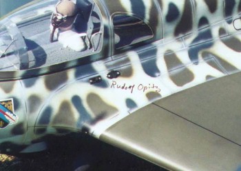 | Mr Opitz was kind enough to put his autograph on the wing root of Bob's Komet. Note also that Bob added painted panel lines to his model. | ||