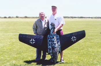 | At the Warbirds Over Long Island on June 3, 2000 Bob met Rudolf Opitz, the famous Komet test pilot. The day before the event his Komet was flown for the first time to ensure that there were no problems with it at the event. | ||
