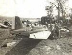 The last chapter in the life of 'White 05' came to light in Stephen Ransom's book about the history of Brandis. It features two pictures of 'White 05' made by US soldiers after the capture of Brandis. For a long time I thought 'White 05' was found on the Brandis scrap heap, but possibly that is not correct. It's likely the whole airfield was in disarray, looking like a scrap heap. According to an intelligence report, all 30 Komets found on the airbase were destroyed by the Germans by blowing up or torching. 'White 05' doesn't appear to be damaged deliberatly. It's lacking most of the wing root fairings, the skid fairing skins are missing, the canopy and rear view windows are absent.