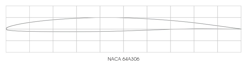 Now the method has been verified, NACA 64A306 profile coordinates were calculated using the NACA 64A006 thickness distribution, combined with the a = 0.8 (modified) camber line scaled down to 30%.