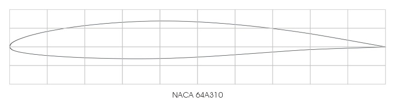 NACA 64A310 profile coordinates were calculated using the NACA 64A010 thickness distribution, combined with the a = 0.8 (modified) camber line scaled down to 30%.