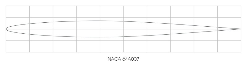 The coordinates for the (symmetrical) 64A006, 64A008 and 64A010 are taken from Abbott & Von Doenhoff, pages 354 to 356. Note that the footer on page 356 is not correct: it says 'NACA 643-018 Basic Thickness Distribution' but it is NACA 64A010. The NACA 6A-series airfoils have basically straight upper and lower lines aft of 80% chord, mostly for manufacturing reasons.