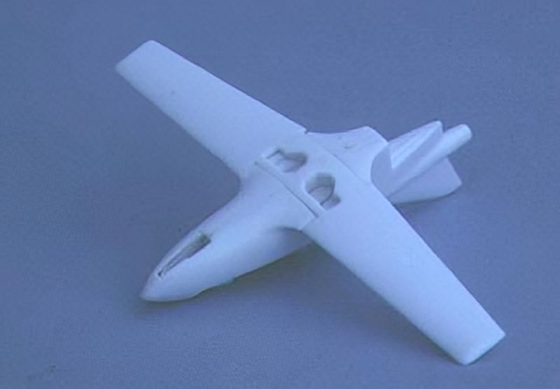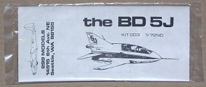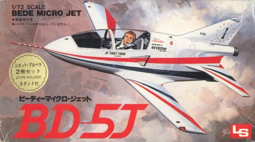 I think the LS BD-5J is the smallest 1/72 kit available. The model was issued in 1983. Unfortunately LS went under a couple of years ago, so this kit is pretty rare. LS made two versions of the kit. Kit A193 has the jet powered BD-5J on the box top, and A194 has artwork of the prop-driven BD-5B (note: it shows N501BD with an air scoop on the fuselage side that only N503BD had). The contents of the two versions are identical however: each box contain complete kits of a long winged prop-driven BD-5B (12 parts), and a short-winged jet powered BD-5J (10 parts). A friend bought kit A193 for me at the IPMS-UK Nationals in 1995.