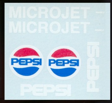 Fellow modeler Tony Landis has built N53EJ owned by Micro Aviation Services in the original Pepsi scheme. He designed a set of Alps decals for his model, consisting of the Pepsi logos and the N-registration for the rear fuselage, and white 'Microjet' and 'Pepsi' scripts for the right and left wings respectively. A cute set, that measures less than 30 by 30 millimeters by the way! Micro Aviation Services reported that the aircraft had the words 'Chill Out' on the nose, but since no photographs seem to exist that show this, it couldn't be reproduced.