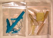 There are two more BD-5 models in 1/72 scale. The oldest was produced by 299 Models, run by Terry Moore from Seattle. It was a limited run injection-molded kit using cast epoxy molds, with a vacformed canopy, sold bagged. There were two versions: a prop issued in 1981 with the short-span A-wing (catalog number 001, no decals in mine) and a jet in 1982 (catalog number 003, apparentlty with decals). Some 1500 were produced, but production was stopped when the LS kits came out. An advert in Fine Scale Modeler, Fall 1983 issue, reports that 200 BD-5J models are left, at 2$ each. The other BD-5 model is a resin model by 'Pylon1 Air Racing Accessories'. They appear to be straight resin copies of the LS/Arii/MicroAce models, in both prop and jet versions. Various resin colors are used, such as blue, goldish brown and white. They appeared on Ebay in 2012.