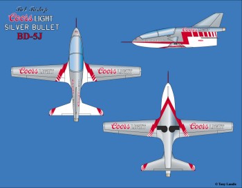 Tony also kindly provided fantastic artwork of the 'Coors Light Silver Bullet' BD-5J N21AP as flown by Bob Bishop. IPMS Belgium had an article about this aircraft in their magazine KIT (issue 81).