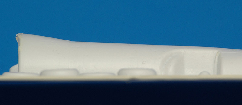 | Here I tried to photograph the same area of the Rareplanes fuselage, still on the sheet. The kink is clearly visible. |