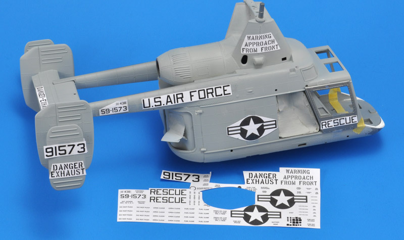 When I test-fitted the painted tail to the model, I was amazed how big the tail was compared to the fuselage. Not having a tail rotor has its drawbacks too, it seems. |
