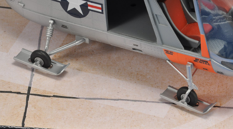| Color scheme 1. Used up to roughly 1963. Silver lacquer overall, large orange areas. Markings in US Navy font. No Star & Bars on top of engine nacelle, and probably none on the belly between the rear wheels. Then called a H-43B, not HH-43B which is a 1962 redesignation. As shown on the Hawk box-art. The 1964 version of TO-1-1-4, page 3.93, shows a largely identical color scheme.
