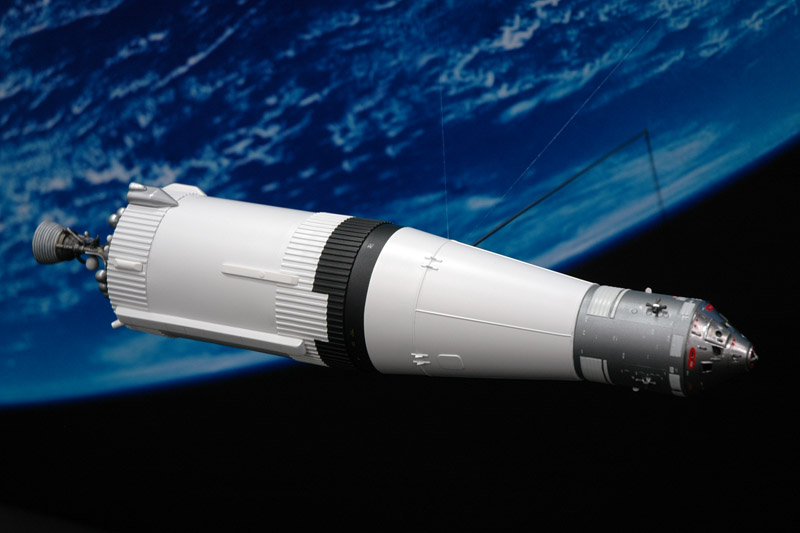 | Nick van der Windt built the third stage with CSM, during translunar injection. The model is a combination of the Revell Saturn V's third stage plus a RealSpace CSM. |